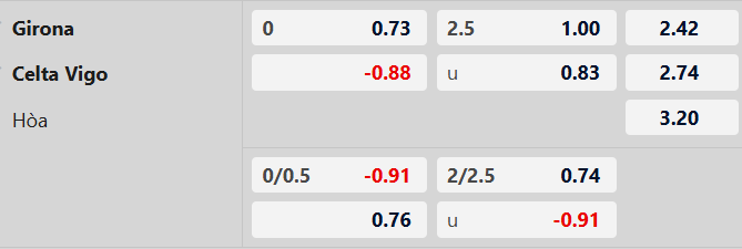 Thông tin tỷ lệ bóng đá Girona vs Celta Vigo: