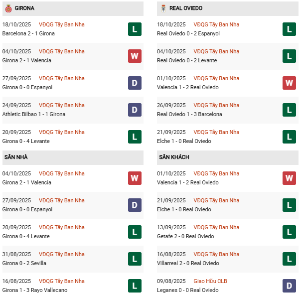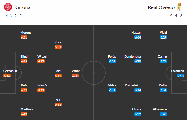 Nhìn rộng hơn, Girona đang gặp vấn đề ở khâu phòng ngự khi để thủng lưới trong 5/6 trận gần nhất, nhận tổng cộng 9 bàn thua. Tuy nhiên, thành tích sân nhà của họ vẫn rất đáng tin cậy, bất bại trong 2 trận gần nhất tại Montilivi, và quan trọng hơn, Girona chưa thua Real Oviedo trong 5 lần đối đầu gần đây.