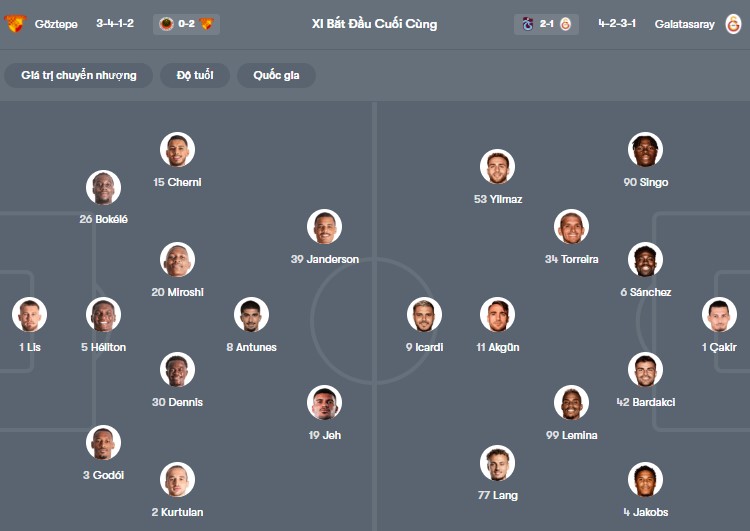 Đội hình dự kiến Goztepe vs Galatasaray: