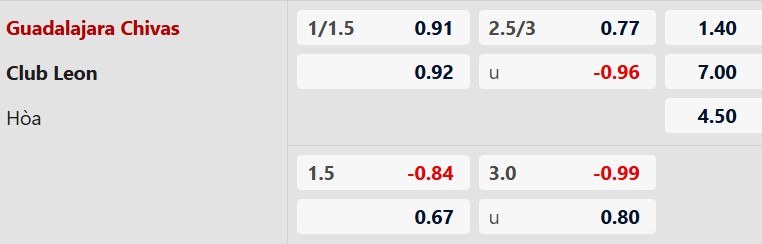 Soi kèo châu Á Guadalajara vs Club Leon: