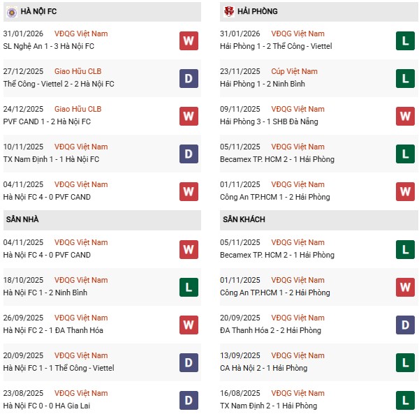 Thống kê phong độ Hà Nội vs Hải Phòng: