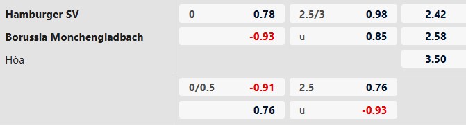 Thông tin tỷ lệ cược Hamburger vs M'gladbach: