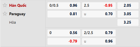 Soi kèo tài xỉu Hàn Quốc vs Paraguay: