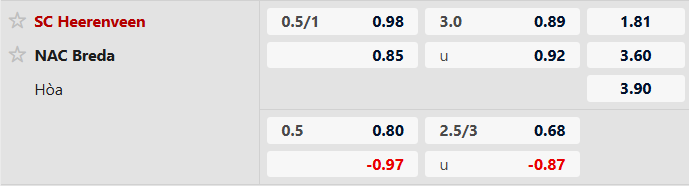 Heerenveen được đánh giá cao hơn với mức kèo chấp 3/4 bàn. Đội chủ sân Abe Lenstra đang có phong độ ấn tượng khi toàn thắng 3 trận gần nhất và duy trì chuỗi 5 trận bất bại liên tiếp. Trong khi đó, Breda lại loay hoay tìm lại cảm giác chiến thắng. Lịch sử đối đầu cũng nghiêng hẳn về phía Heerenveen, khi họ đã đánh bại Breda trong 3 lần chạm trán gần nhất. Do đó, thầy trò Robin Veldman càng thêm tự tin hướng tới việc nối dài mạch thắng trên sân nhà.