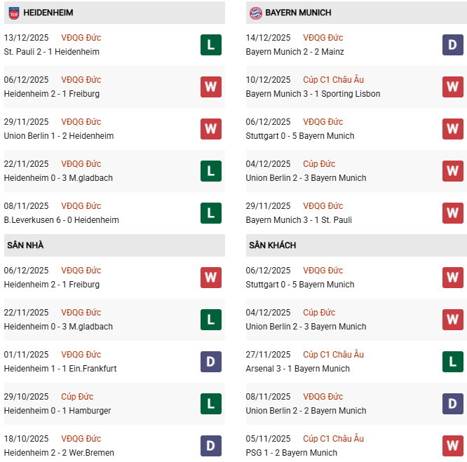 Thống kê phong độ Heidenheim vs Bayern Munich: