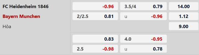 Soi kèo châu Á Heidenheim vs Bayern Munich: