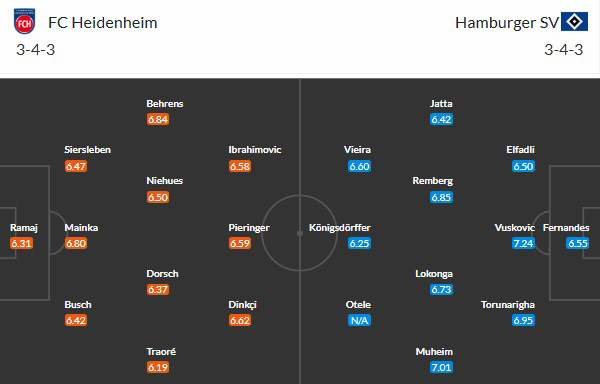 Đội hình dự kiến Heidenheim vs Hamburger: