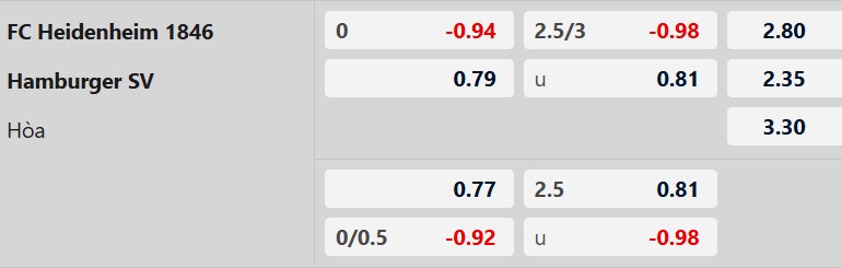 Soi kèo châu Á Heidenheim vs Hamburger: