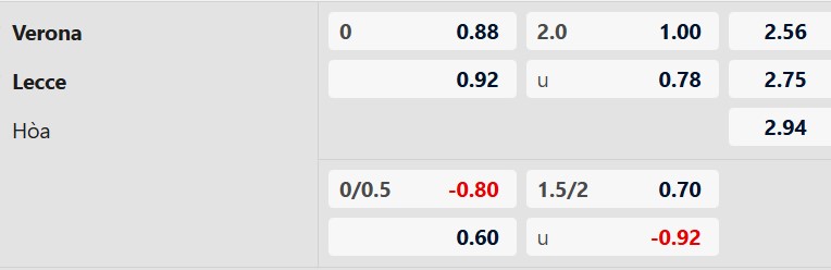 Thông tin tỷ lệ kèo Hellas Verona vs Lecce: