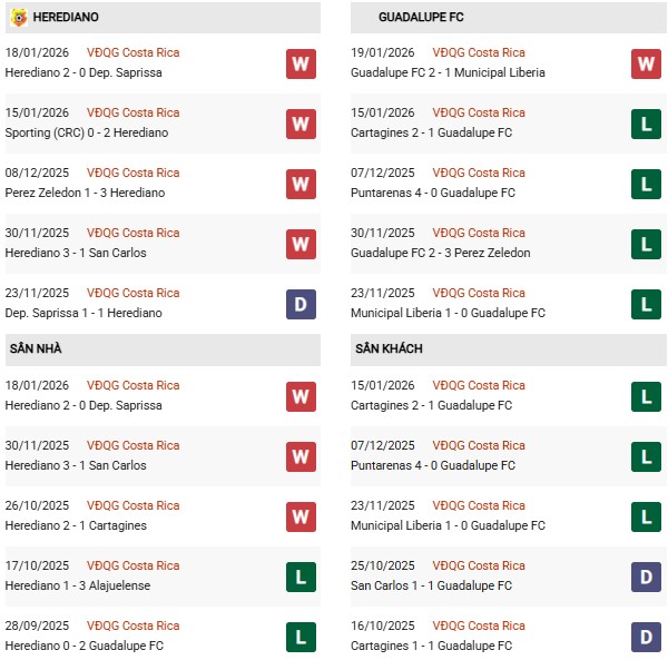 - Trên sân nhà, Herediano thắng 5, thua 2 trước Guadalupe.