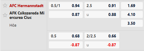Thông tin tỷ lệ bóng đá Hermannstadt vs Csikszereda: