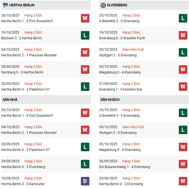 - Trên sân nhà, Hertha Berlin thắng 1, thua 2 trước Elversberg.