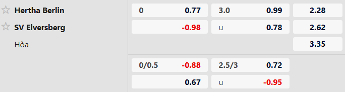 Hertha Berlin để thua cả 4 trận đấu mới đây chạm mặt Elversberg. Trên sân nhà, Hertha Berlin là đội bóng thiếu tin cậy với phong độ trồi sụt thắng có 4 lần, hòa 6 và thua 7 trận ở 17 trận chính thức gần nhất. Elversberg thắng tới 8/10 trận đấu gần nhất và đủ sức thuyết phục giới đầu tư châu Âu.