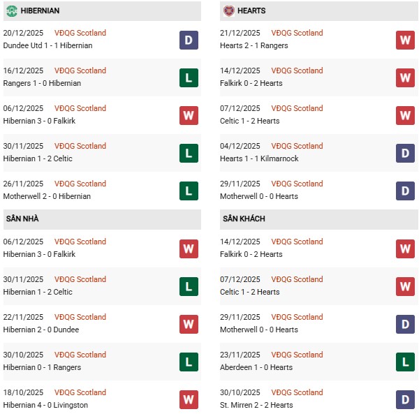 Trên sân nhà, Hibernian mới tịt ngòi đúng 1 trận kể từ đầu giải VĐQG Scotland 2025/26 tới giờ và chính vì thế, phần lớn màn tiếp khách đã khép lại với không dưới 3 pha lập công. Phía đối diện, Hearts thường xuyên ghi trên 1 bàn trong các chuyến làm khách và hiện sở hữu hàng công mạnh nhất giải đấu (36 bàn/18 trận). 90 phút sắp tới càng hứa hẹn sôi nổi khi mà 2/3 màn tỉ thí mới đây giữa hai đội đã kết thúc với tối thiểu 3 tình huống lưới rung.