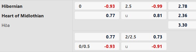 Thông tin tỷ lệ kèo Hibernian vs Hearts:
