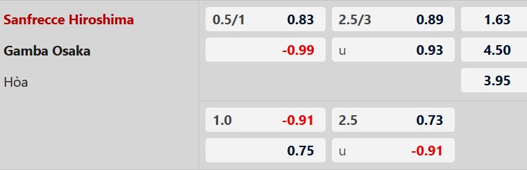 Thông tin tỷ lệ kèo Hiroshima vs Gamba Osaka: