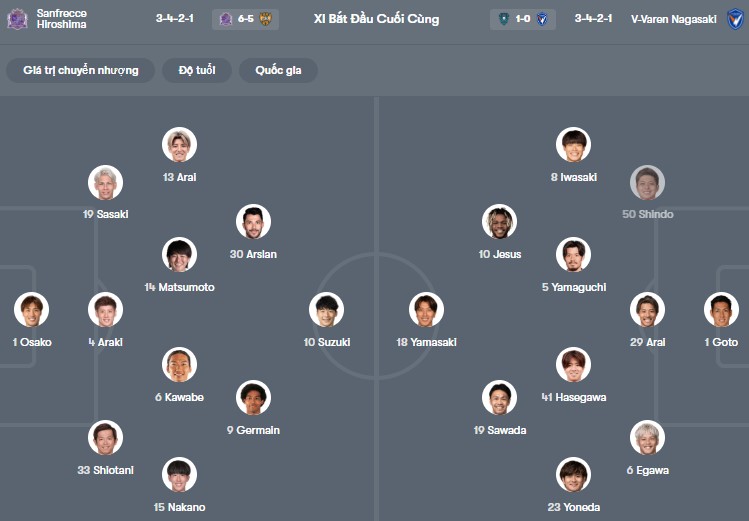Đội hình dự kiến Hiroshima vs Nagasaki: