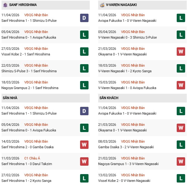 Về phía đội khách, V-Varen Nagasaki cũng đang rơi vào tình cảnh tương tự. Sau giai đoạn khởi đầu khá hứa hẹn, thầy trò HLV Takuya Takagi bất ngờ chững lại với 2 thất bại liên tiếp trước Avispa Fukuoka (0-1) và thảm bại 0-3 trước Shimizu S-Pulse ngay trên sân nhà.