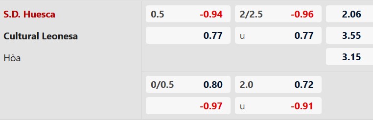 Thông tin tỷ lệ cược Huesca vs Cultural Leonesa: