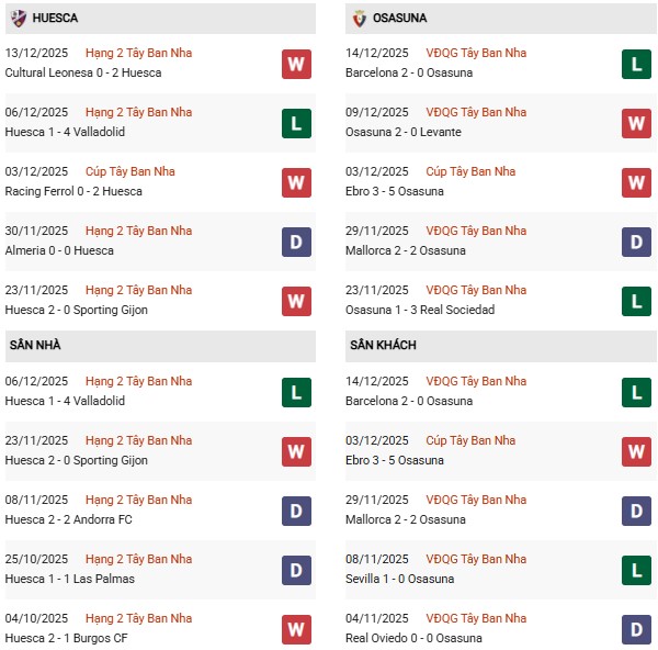 - Trên sân nhà, Huesca thắng 2, thua 4 trước Osasuna.