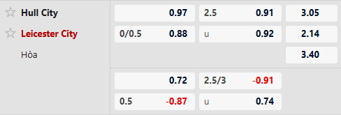 Thông tin tỷ lệ kèo Hull City vs Leicester: