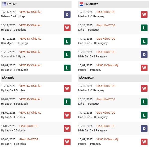 Thống kê phong độ Hy Lạp vs Paraguay: