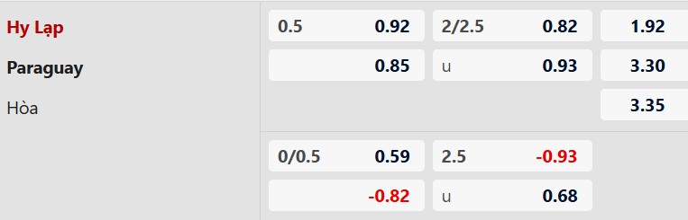 Thông tin tỷ lệ kèo Hy Lạp vs Paraguay: