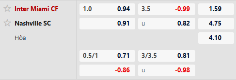 Thông tin tỷ lệ kèo Inter Miami vs Nashville: