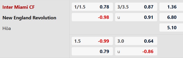 Soi kèo châu Á Inter Miami vs New England: