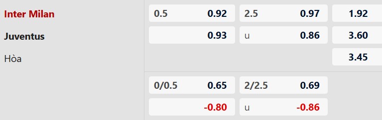 Thông tin tỷ lệ kèo bóng đá Inter Milan vs Juventus: