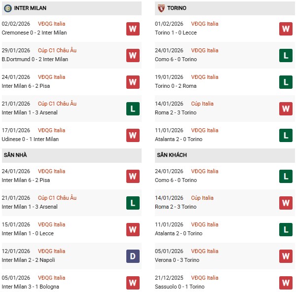 Sau khi để thua AC Milan ở bán kết Coppa Italia mùa trước, Inter bước vào sân chơi này ở mùa 2025/26 theo cách không thể tuyệt vời hơn khi đè bẹp Venezia tới 5-1 ở vòng 16 đội. Với tư cách đội đang dẫn đầu Serie A và đã 9 lần đoạt Cúp quốc gia Italia, Inter vượt trội hoàn toàn Torino trên mọi phương diện.