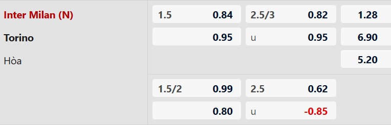 Thông tin tỷ lệ kèo bóng đá Inter Milan vs Torino: