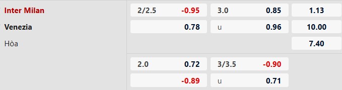 Thông tin tỷ lệ kèo bóng đá Inter Milan vs Venezia: