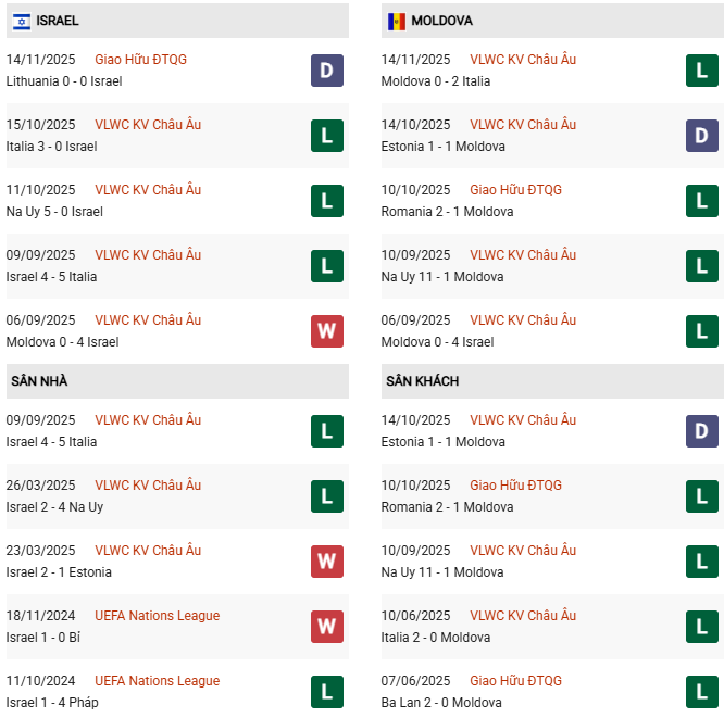 Thống kê phong độ Israel vs Moldova: