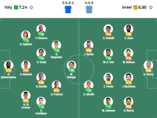 Đội hình dự kiến Italia vs Israel: