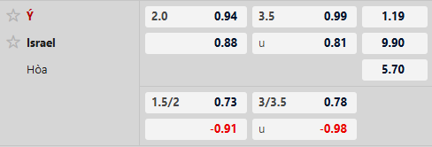 Thông tin tỷ lệ kèo bóng đá Italia vs Israel: