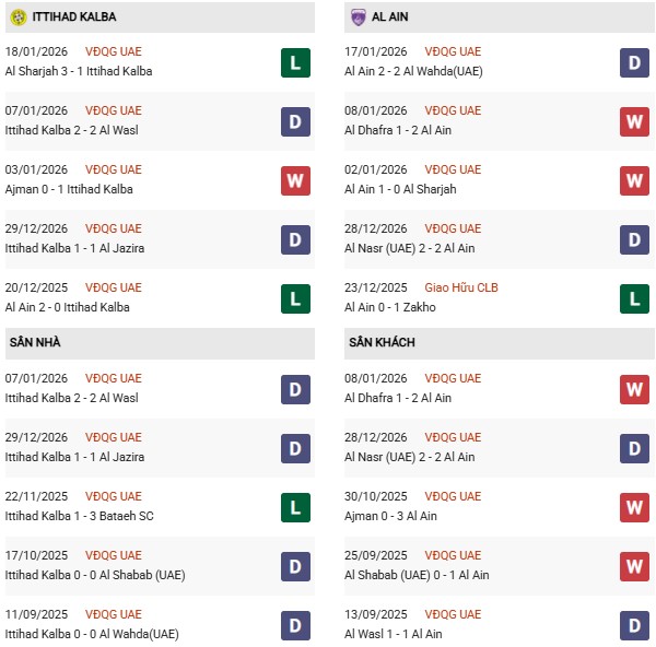 Ittihad Kalba không có phong độ tốt trên sân nhà, trong khi Al Ain lại đang duy trì mạch bất bại ấn tượng và rất cần điểm để bám đuổi ngôi đầu.