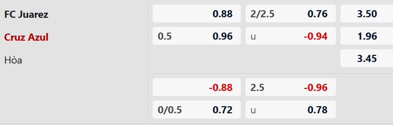 Thông tin tỷ lệ kèo Juarez vs Cruz Azul: