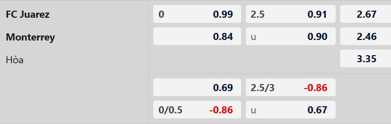 Thông tin tỷ lệ kèo Juarez vs Monterrey: