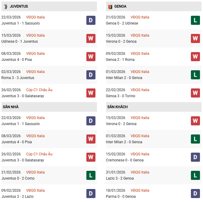 Juventus bước vào trận đấu với lợi thế sân nhà cùng đội hình có chiều sâu và kinh nghiệm hơn hẳn Genoa. Lối chơi của “Bà đầm già thành Turin” vẫn dựa nhiều vào sự chắc chắn nơi hàng thủ và khả năng kiểm soát tuyến giữa, giúp họ duy trì thế trận ổn định trong phần lớn thời gian.