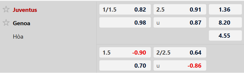 Thông tin tỷ lệ kèo Juventus vs Genoa:
