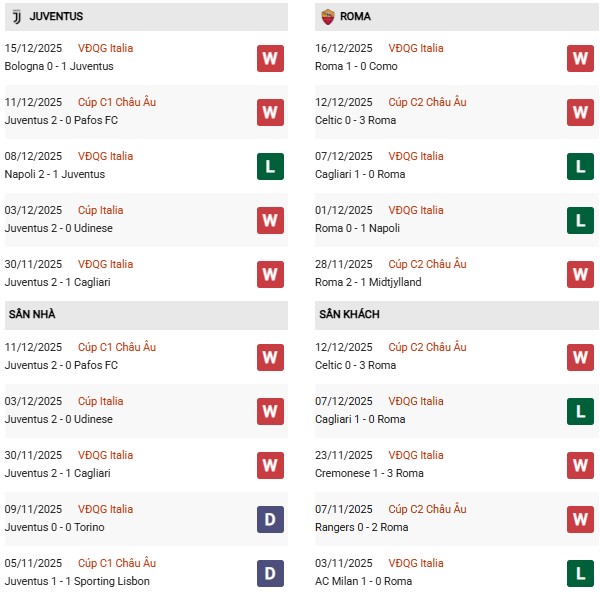 - Trên sân nhà, Juventus thắng 7, thua 1 trước Roma.