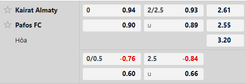 Soi kèo tài xỉu Kairat Almaty vs Pafos FC: