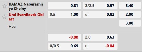 Thông tin tỷ lệ bóng đá Kamaz vs Ural: