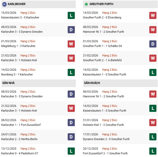 Thống kê phong độ Karlsruher vs Greuther Furth: