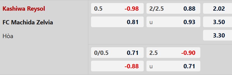 Thông tin tỷ lệ kèo Kashiwa Reysol vs Machida: