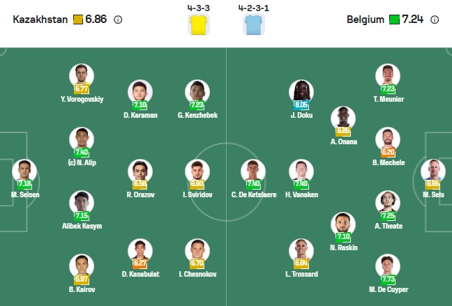 Đội hình dự kiến Kazakhstan vs Bỉ: