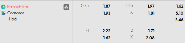 Thông tin tỷ lệ Kazakhstan vs Comoros: