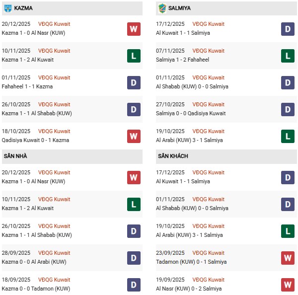 Thống kê phong độ Kazma vs Al Salmiya: