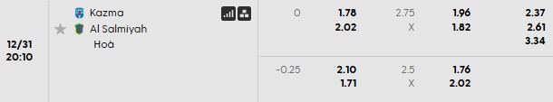 Thông tin tỷ lệ Kazma vs Al Salmiya: